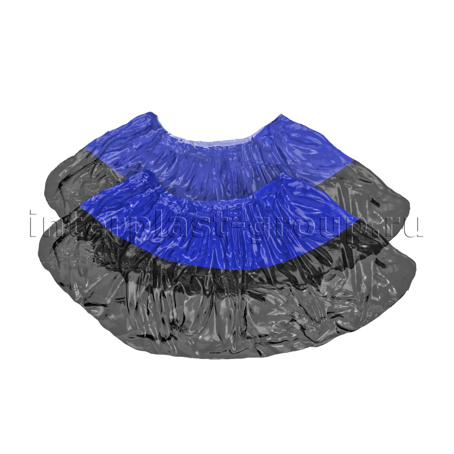 Бахилы сине-черные 1000 шт (500 пар), 54 мкм, двойная подошва, с одной резинкой, Прочные+