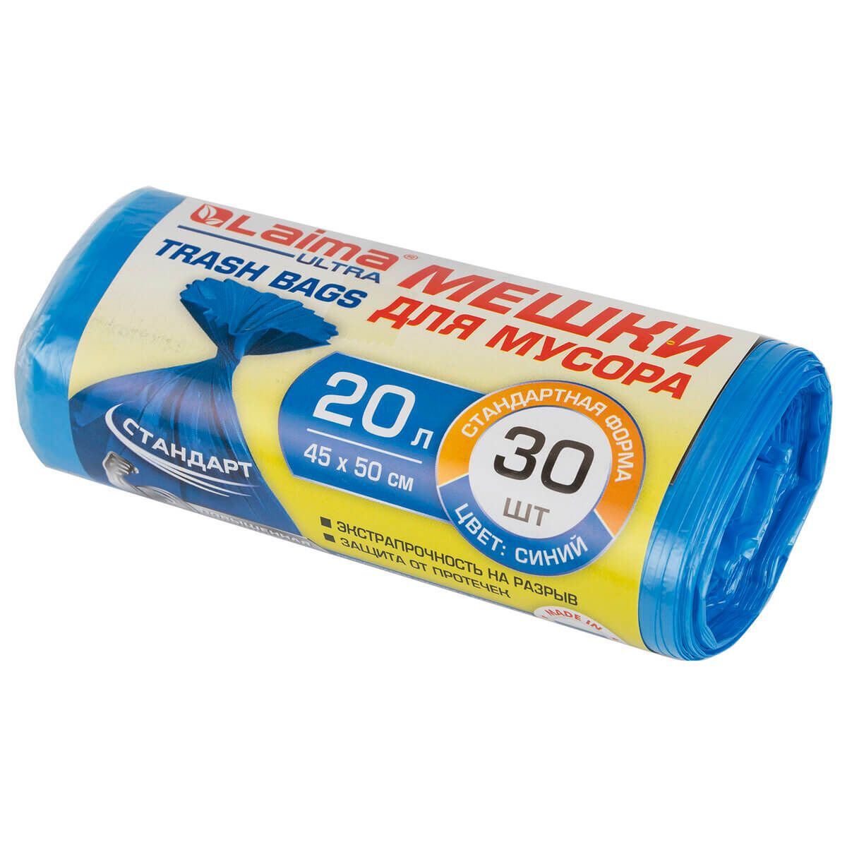 Мешки для мусора 20 л, синие, в рулоне 30 шт., ПНД, 8 мкм, 500х450 мм, LAIMA, 607682 в Ейске
