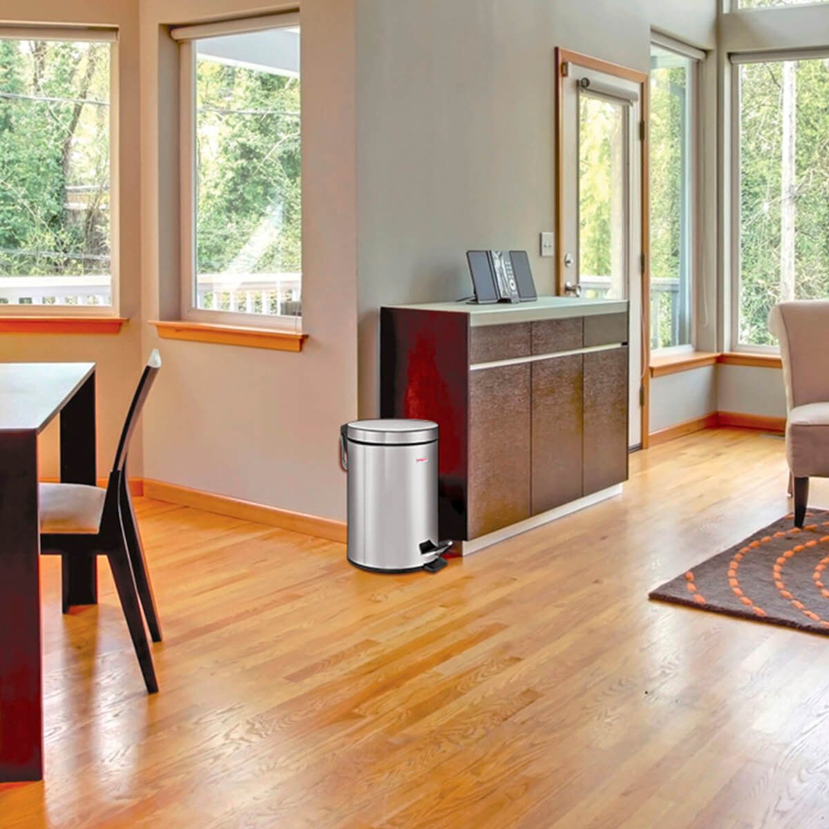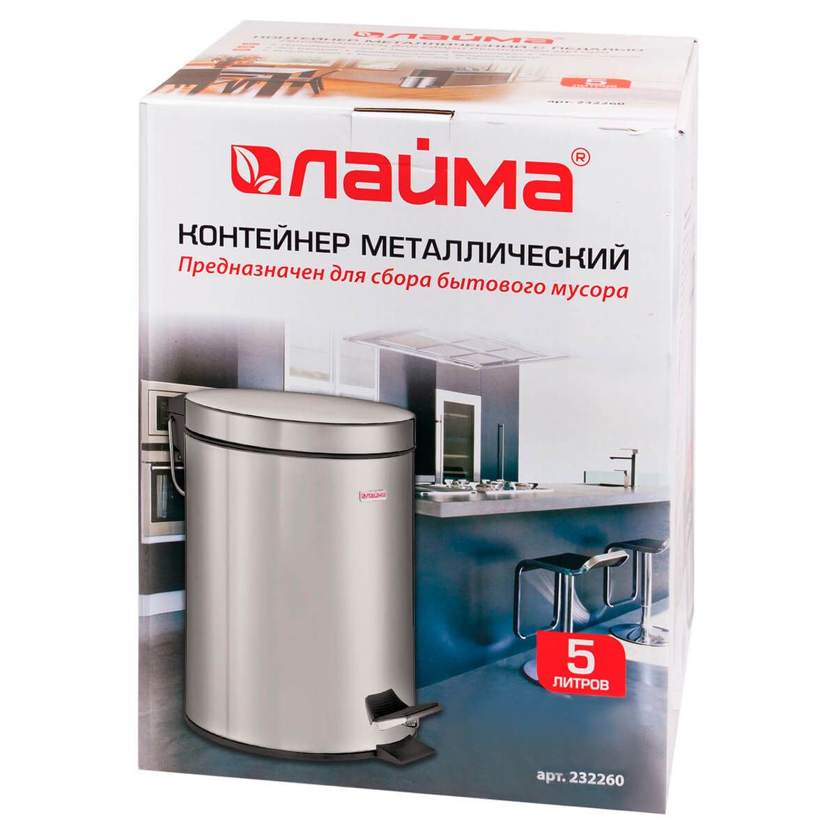 Ведро-контейнер для мусора (урна) с педалью LAIMA Classic, 5 л, зеркальное, нержавеющая сталь, со съемным внутренним ведром